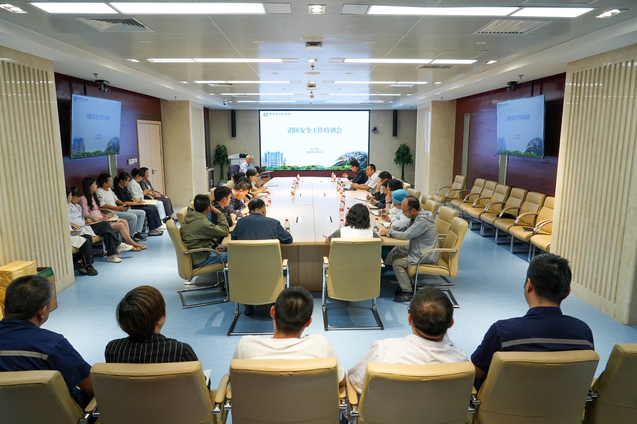 消防安全管理,切实提升重点部位责任人员的消防安全意识与应急处置能力,有效预防和遏制电气火灾事故,保障职工和患者生命财产安全,9月5日下午,保卫处在国际会议厅组织开展电气火灾消防专项培训。本次培训邀请西安市火灾调查专家张跃进行专题授课,行政职能部门及临床消防重点科室安全责任人共计50余人参加培训。
