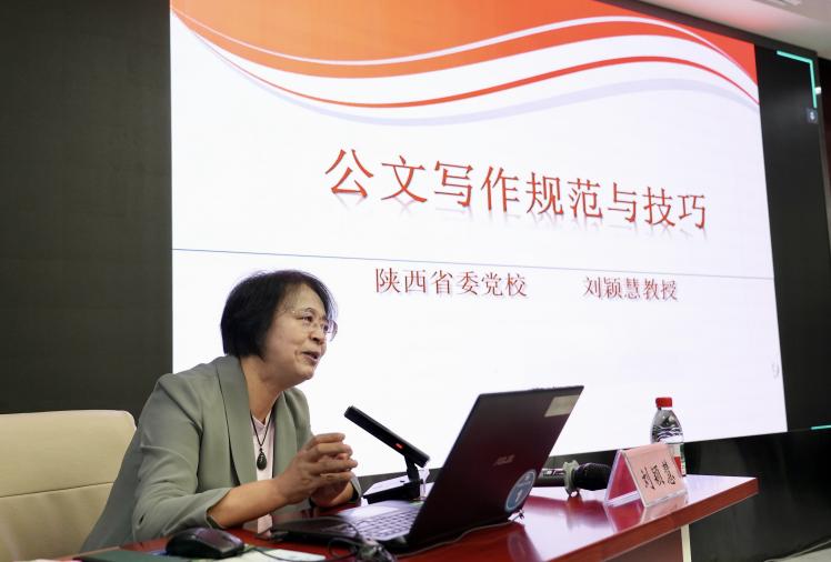 为进一步提高行政后勤管理人员公文写作能力和水平,推动公文写作规范化、标准化,持之以恒改进文风,提升以文辅政质效,在院长宋张骏的指导安排下,9月18日上午,院长办公室特邀中共陕西省委党校(陕西行政学院)刘颖慧教授到黑料网作公文写作专题辅导。行政后勤管理、医护人员等200余人线上线下参会。