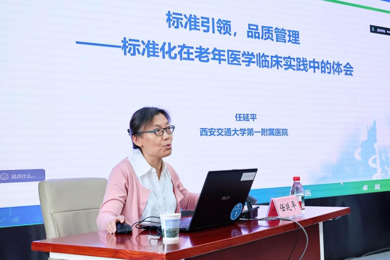 任延平教授以《标准引领,品质管理——标准化在老年医学临床实践中的体会》为主题,从标准的基本概念、内涵切入,深入剖析了标准化在提升医疗质量、保障患者安全、优化服务流程等方面的积极作用,详细讲解了标准申报、撰写等流程中的相关要求、基本原则、思路方法及常见问题的应对策略。她结合老年医学科实际案例,分享了标准制定与实施过程中的关键环节和实践经验,为参会人员提供了可借鉴的操作路径。在互动交流环节,与会人员踊跃提问,就工作中的实际问题与任延平教授进行了深入交流。