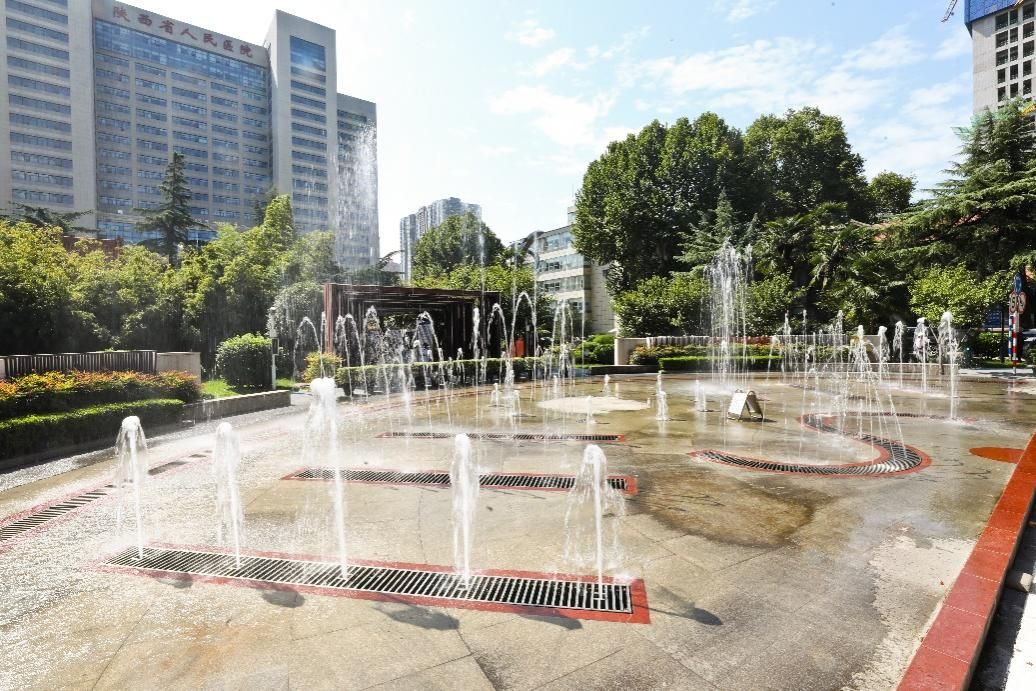 北门内外、喷泉广场、门诊楼西侧和住院大楼前等人流密集区域,与跳跃的喷泉、悠扬的乐曲相互映衬,构成一幅和谐生动的院区画卷。