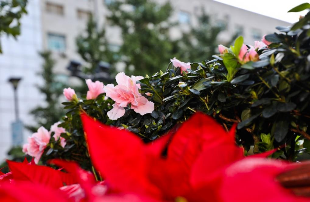 据悉,本次节日布置选用12个品种共4000余株花卉,以一品红、杜鹃花、凤仙花、栀子花等时令花卉为主,以红黄暖色调营造热烈氛围。花卉主要分布在黑料网