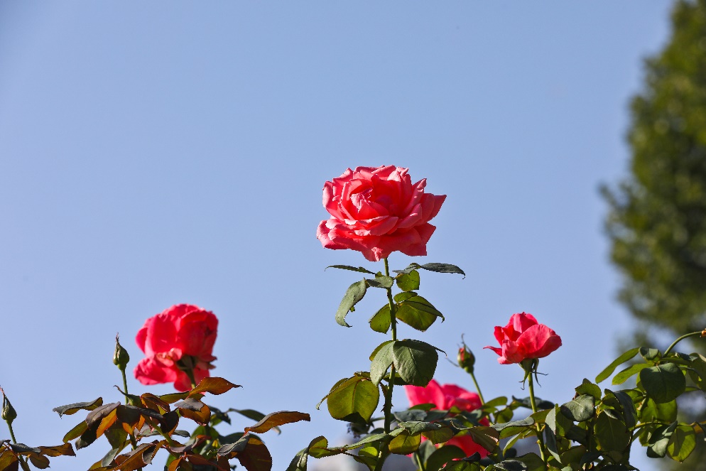 北广场上,火红的一品红、娇艳的杜鹃花在阳光下格外醒目。伴随着《今天是你的生日》《我爱你,中国》等动人旋律,音乐喷泉“翩翩起舞”,不少患者和家属驻足欣赏、拍照留念,院内洋溢着温馨祥和的节日氛围。