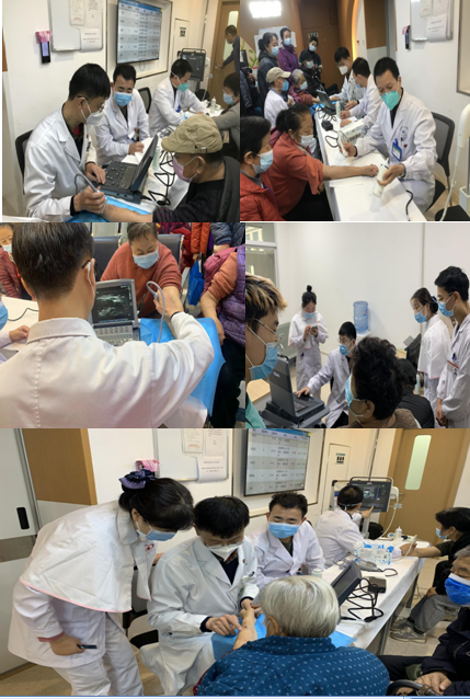 杜鹏主任、王晓明主任、张蓬杰副主任医师、金刚副主任医师及血管通路组专家从血管走形、内瘘功能、内瘘血流等方面对患者进行评估,各位专家为前来义诊的患者建立了电子档案,包括患者一般信息、血管B超采图及血管血流采图等,对有隐患问题的患者,给予了细致讲解,督促及早干预。特殊患者与护理组沟通后,指导穿刺方式改善内瘘情况,保证“生命线”的畅通。活动提高了医护人员的血管通路水平,更让肾友们近距离的享受到了经济、便捷、高效的医疗服务。