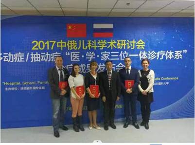 2017年,焦富勇教授参加中俄儿科学术研讨会—多动症/抽动症“医×学×家三位一体诊疗一体”医疗成果发布会。