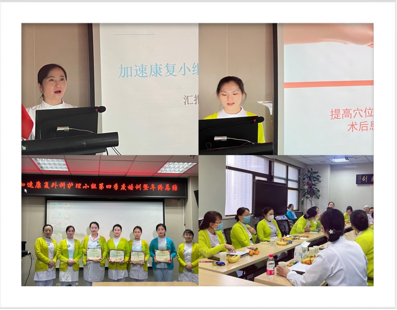 11月30日,加速康复外科护理小组第四季度培训如期举行,组长赵文彩护士长主持,相关科室护士长及全体小组成员参加。