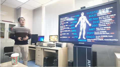 高质量发展的节奏,1月6日上午,利用晨交班的时间,邀请磁共振科研专家来科室进行RSNA新技术及其临床应用的讲座与交流。磁共振室所有医生、技术骨干、进修生、规培生等40余人参加。
