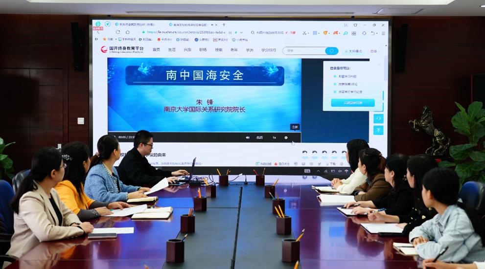 活动首先由行政二支部书记、院办主任张真妮组织大家集中学习,她结合近年来习近平总书记对国家安全的重要论述及党的二十大对维护国家安全和社会稳定提出的新表述和新要求,对国家安全进行了系统的阐述,要求支部党员充分认识坚持总体国家安全观、维护国家安全的丰富内涵和重大意义,进一步增强国家安全意识和法治意识,坚定理想信念,在日常工作和生活中积极防范和制止危害国家安全的违法犯罪行为,带头履行维护国家安全责任。随后,处长助理焦丽敏就何为国家安全、危害国家安全的行为及如何维护国家安全,对国家安全教育日设立及其意义进行专题讲座,会议还就《国家安全法》进行了逐条学习。活动最后,大家集体观看了国家开放大学系列安全教育课程——《南海问题与大国战略竞争》《新发传染病及其应对》,进一步深化国土安全与生物安全意识。