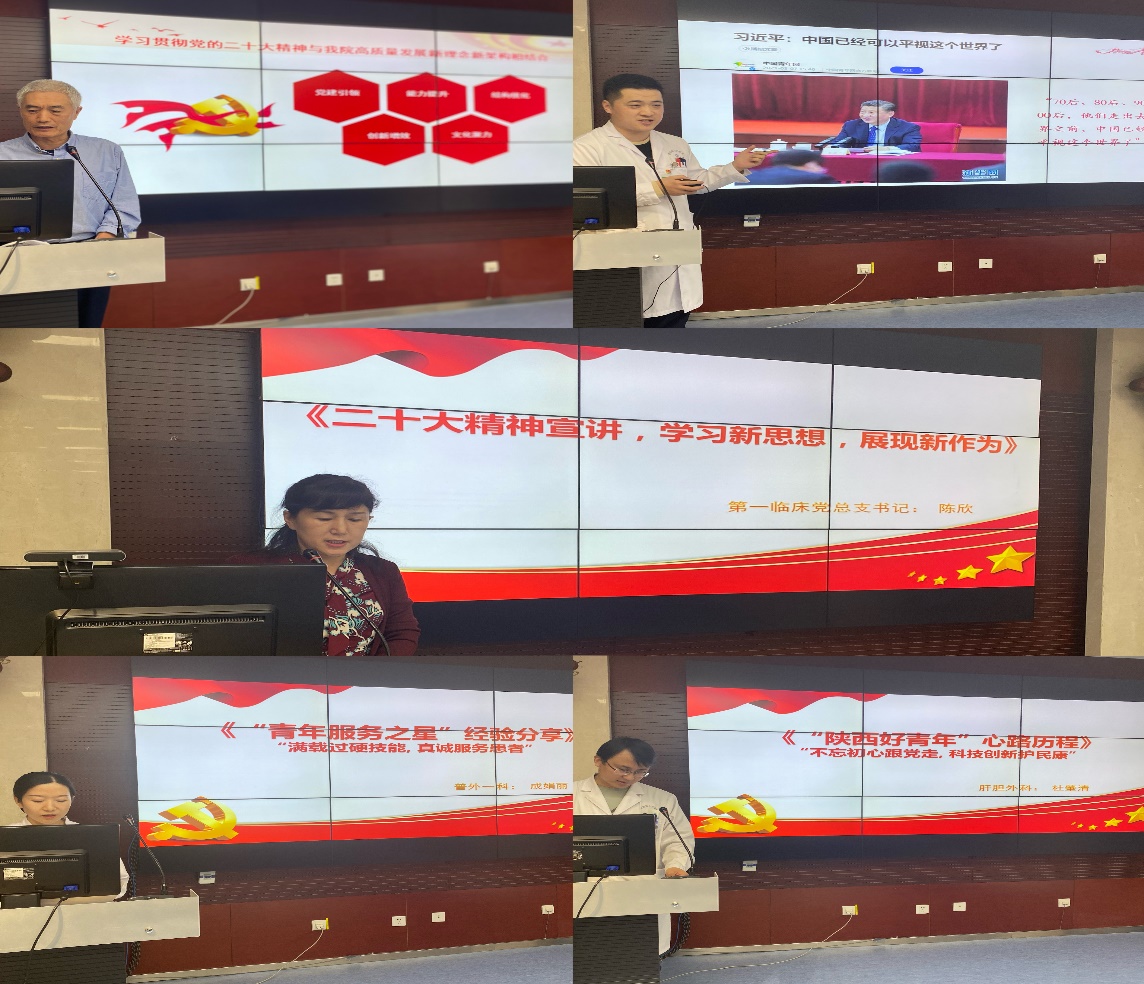 “青年服务之星”称号的普外一科成娟丽以《满载过硬技能,真诚服务患者》为主题进行经验分享,荣获“陕西好青年”称号的肝胆外科杜肇清博士以《不忘初心跟党走,科技创新护民康》分享了心路历程。
