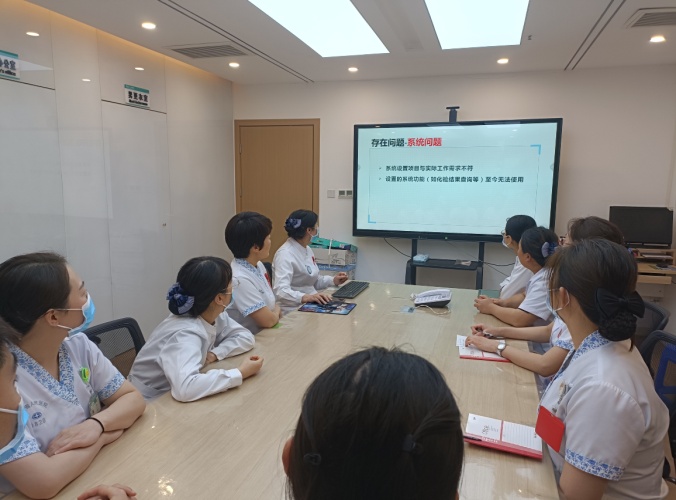 反思促成长,复盘得发展。5月9号下午,科室召开电子病历应用水平评级反馈总结会,对电子病历系统的评审内容进行全面复盘总结。大家积极探讨,踊跃发言,从日常工作的各种细节出发,查漏补缺,提出需要进一步改进的地方及整改意见汇总反馈给工程师,以期能继续完善信息系统。同时要求加强病历质控工作,强化低年资护士的电子病历应用水平培训考核,不断提升医护人员的电子病历应用水平。
