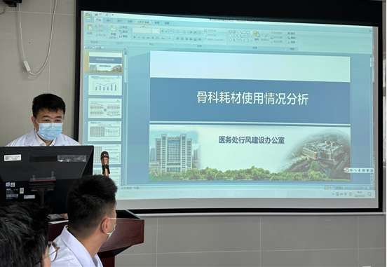 为进一步规范骨科病院高值医用耗材的合理使用,完善骨科高值耗材管理流程,5月23日,骨科病院刘时璋主任组织开展了耗材使用分析专题培训会议,邀请医务处行风办周定永主任对骨科病院耗材使用情况做了详细的汇报和分析。会议由刘时璋主任主持,骨科病院全体医护人员参加。