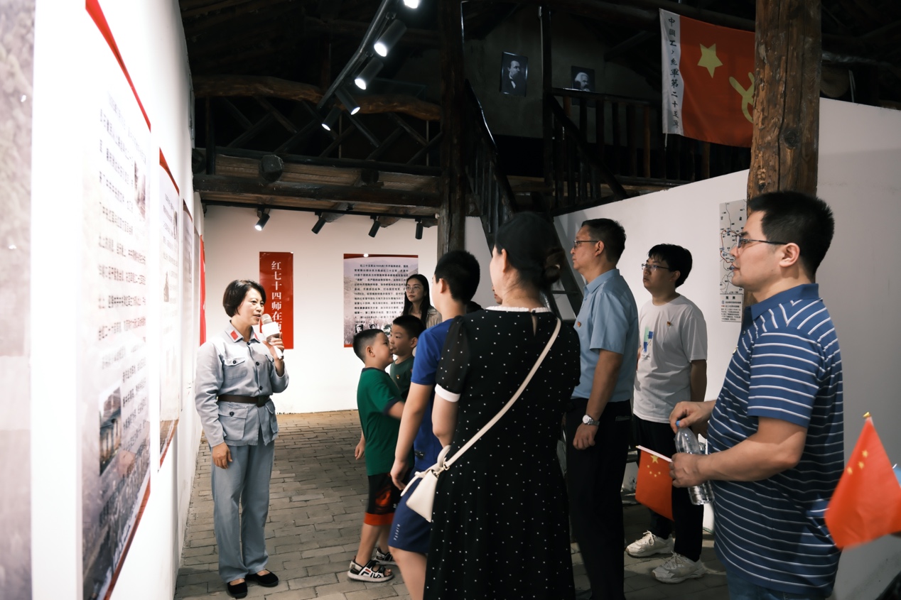 在陈列馆前,面对鲜红的党旗,刘时璋主任带领大家重温入党誓词,大家齐唱《没有共产党就没有新中国》,在嘹亮的歌声中重温红色记忆。随后,在讲解员的带领下认真参观了陈列在馆内的珍贵资料,怀着无比崇敬的心情观沙盘、看实物,激情满怀地吟诵《七律·长征》,仔细聆听讲解员讲解,追寻先辈奋斗的足迹。