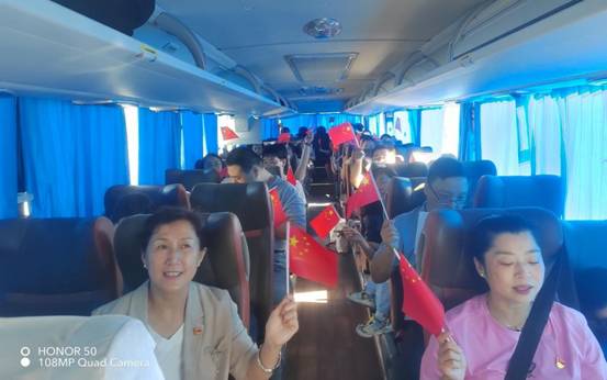出发。陈欣总支书记简短致辞,大家踊跃歌唱爱国歌曲,大声唱出了对祖国的祝福,将气氛推向高潮。为增强党史学习的趣味性和积极性,紧扣“学习二十大、永远跟党走、奋进新征程”主题,设置了有奖问答环节,大家踊跃参加、积极答题。