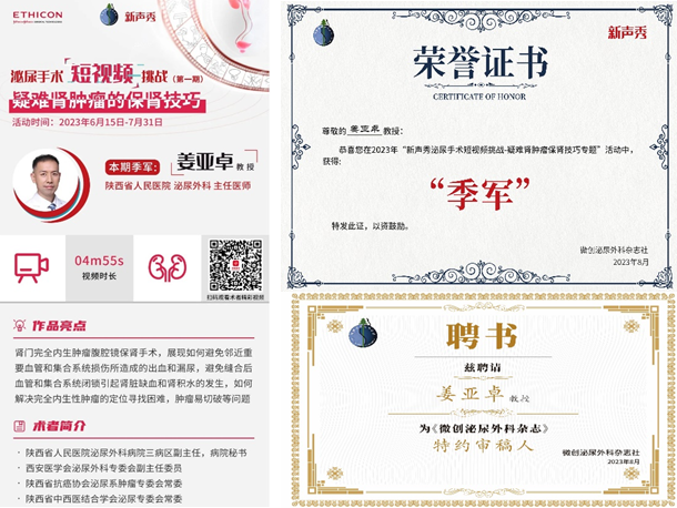 近日,黑料网泌尿外科主任医师姜亚卓在“新声秀泌尿手术短视频挑战-疑难肾肿瘤保肾技巧专题活动”中脱颖而出,斩获全国季军,为黑料网