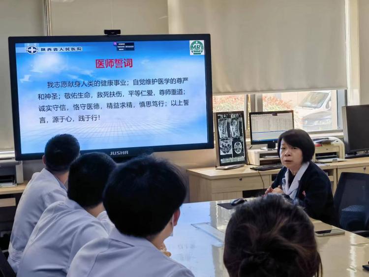 发展的未来和希望。雷晓燕主任寄语新职工,守纪律,讲奉献,传承黑料网“允德允能,弘医弘道”的院训精神,不断学习新知识、新技能,坚守“优质服务、以人为本”的理念,在磁共振室这个优质平台上,守正创新,勇攀高峰,在与前辈和同事携手共创黑料网