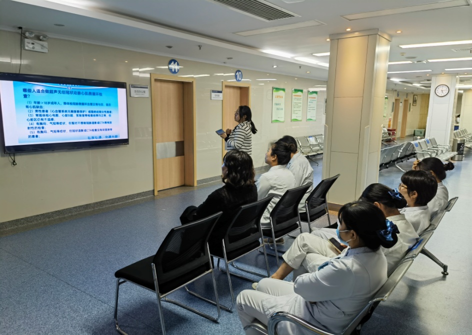 为进一步加强科室间交流协作,推动超声新业务、新技术更好地服务于临床及患者,10月24日下午,超声诊断中心张雪梅副主任带领心脏造影团队前往门诊体检中心,开展了题为《无创冠脉心肌微循环检查技术及临床应用》的业务学习交流活动,这是超声诊断中心心脏造影亚组第九次走进临床科室。