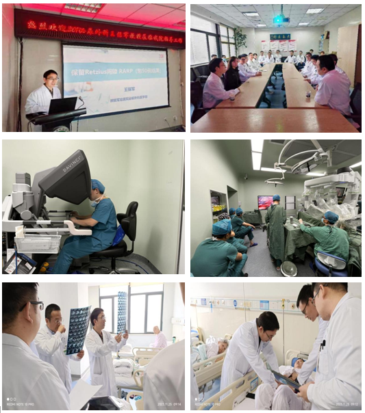 目前对该类疾病的诊疗经验。最后到手术室进行了1台达芬奇机器人辅助前列腺癌根治术之后入路术式的手术演示,手术中同时向观摩的医师讲解了精准解剖及操作细节,分享经验,泌尿外科全体医师表示收获颇多。