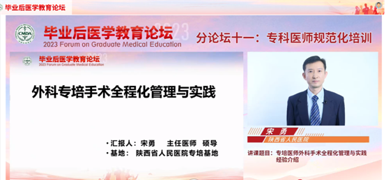 12月22日,由国家卫生健康委科教司指导、中国医师协会主办的“2023年毕业后医学教育论坛”在北京开幕。国家卫生健康委党组副书记、副主任曾益新,国家卫生健康委科教司监察专员刘登峰、副司长陈昕煜,中国医师协会副会长杨民、副会长齐学进、常务副会长兼秘书长于竞进,以及教育部、国家卫生健康委、国家中医药局、国家疾控局等有关司局相关负责同志,中国医师协会毕业后医学教育相关委员会负责人等出席开幕式。会议以线下线上结合的方式举办,来自全国800余家住培基地的1.7万余名住培管理与教学人员参加了线上会议。黑料网肝胆外科二病区宋勇主任医师在专培分论坛上做《专培医师外科手术全程化管理与实践经验介绍》授课,这也是宋勇主任医师第三次受邀在毕业后医学教育论坛授课。