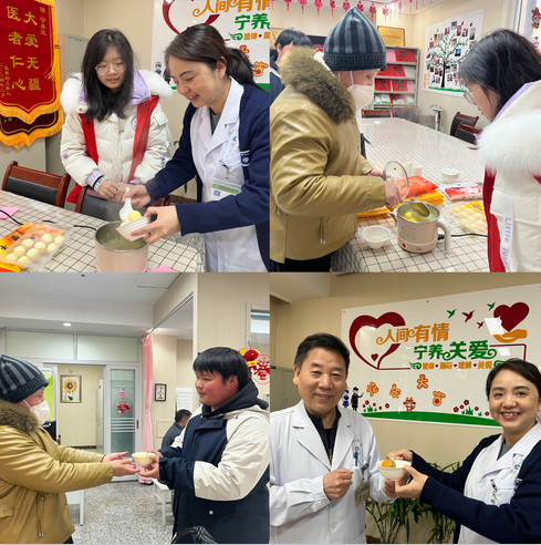 外面大雪纷纷,屋内热气腾腾,一大早,宁养院的医护人员就煮好了象征着“事事如意”的汤圆,小小的汤圆被做成了金灿灿的柿子形状,每一个带着屋外寒气的患者家属一进门就端上了热乎乎的醪糟汤圆,咬一口,甜糯的黑芝麻溢满了整个口腔。吃完汤圆,举行了宁养义工精心准备的猜谜语活动,宁养院医务人员为参与者赠送了汤圆,让他们将爱与节日的祝福带回家中。