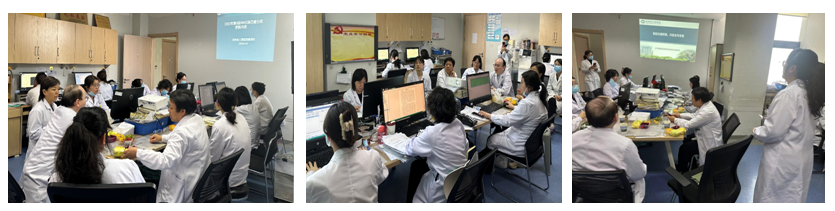 血液内科医生积极参与讨论,反响热烈。双方就现有合作模式的优化、信息共享机制的建立以及病理报告的及时性和准确性等问题展开了深入讨论。李文生主任针对病理申请单的完整填写以及淋巴瘤分子基因检测及时规范等对血液科医生提出了希望和要求,血液科医生们也提出了需求和相关建议。血液内科王一主任对病理科下临床系列活动的开展给予了高度的肯定,再次强调病理科工作对临床诊疗工作高质量开展的重要性和必要性,并对两个科室今后的合作进行了期许与展望。
