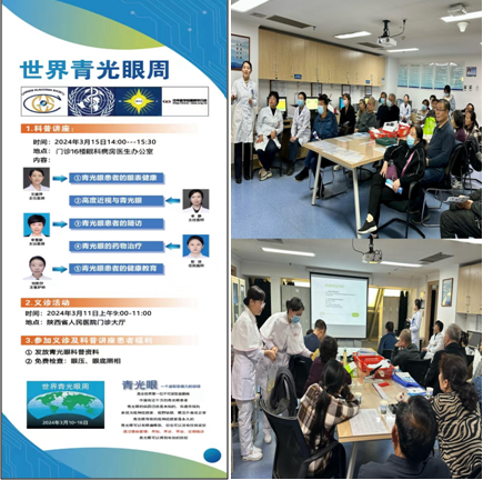 3月15日下午在眼科病区举办青光眼科普知识讲座。王建萍主任医师、李静主任医师、李雪颖主治医师、彭洁住院医师和刘莉莎护士长分别从青光眼患者的眼表健康、高度近视与青光眼、青光眼患者的随访、青光眼的药物治疗以及青光眼患者的健康教育等方面对现场患者进行了深入浅出的讲解。现场气氛活跃,互动答疑环节热烈,让更多人参与到青光眼知识的分享和学习中来,提高了公众对该疾病的知晓率。