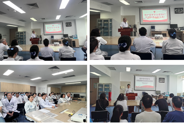 呼吸与危重症二科积极组织全体医护开展“人人争当国安卫士”的国家安全学习活动。活动中,全科医护人员关注全民安全教育大讲堂APP,坚持每日线上学习国家安全教育知识,每日学习打卡,深刻认识到了国家安全的重要性。此外,魏声泓主任组织科室医患共同参与学习国家安全知识,通过生动的案例和深入浅出的讲解,让全体医护对国家安全有了更加全面和深刻的认识。