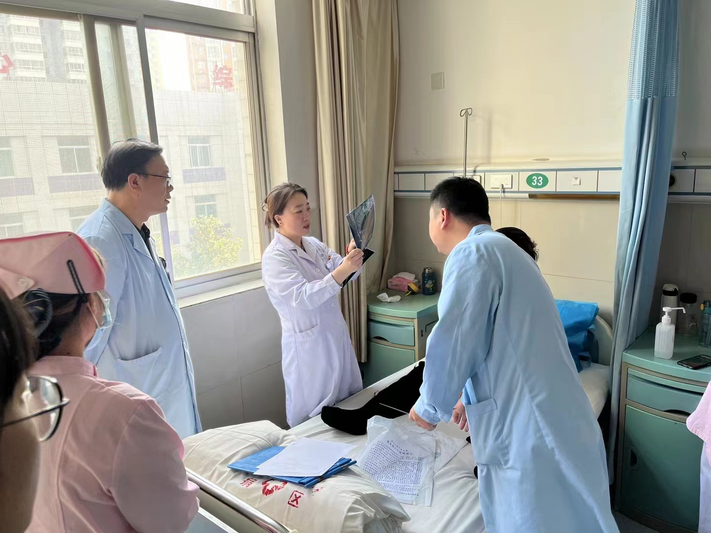 最后,李晓燕主任进行了专家查房及义诊。通过义诊活动,为各位到场的群众进行疾病知识宣讲,答疑解惑,提高了群众对风湿免疫疾病的认知,受到现场群众的一致好评。