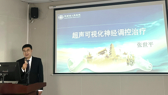随后,麻醉科张世平副主任医师做了《超声可视化神经调控治疗》的专题讲座,介绍了麻醉科疼痛治疗组开展的相关业务,通过视频展示了颈肩腰腿痛治疗的成功病例。刘时璋主任做总结发言,表示要完善骨科相关疼痛梯度治疗,更好地服务慢性疼痛患者。希望科室间共同协作搭建慢性疼痛治疗的平台,提升质量内涵,提高服务意识,更高效地为患者解决疼痛困扰。