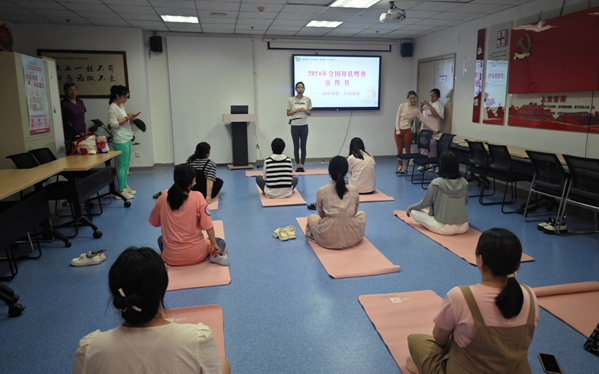 活动包括科普讲座、孕期瑜伽体验和现场免费咨询三部分,近30组家庭参加,王艳妮副护士长主持。杨春荣总护士长作为国际母乳喂养咨询师,分享了“如何顺利母乳喂养之母乳喂养不可替代”,从乳汁的产生、母乳喂养的好处、哺乳姿势、特殊情况的母乳喂养、母乳喂养过程中家庭成员的角色及母乳喂养对母婴健康的大数据结局等内容进行讲授,并现场进行模具示范,深入简出、让孕产妇家庭切实受益。活动还邀请经工作人员评估良好的孕妇现场进行瑜伽体验,专业的指导不仅使孕妇全身心放松舒适,更增加了孕妇自然分娩的信心。最后,王美蓉、王艳妮和李华三位副护士长,为参加活动的孕产妇家庭提供现场免费咨询。