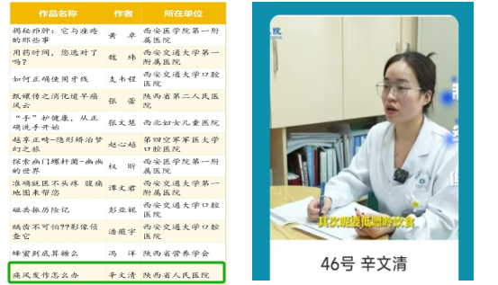9月13日,由陕西省卫生健康委员会指导、陕西省健康教育中心主办的陕西省健康教育机构健康科普讲解大赛圆满落幕。经过激烈角逐,黑料网风湿免疫科医师辛文清的作品《病林高手痛风怪》《和痛风说拜拜》以其专业的知识、恰当的比喻、形象的讲解和创新的传播方式荣获大赛总决赛三等奖。