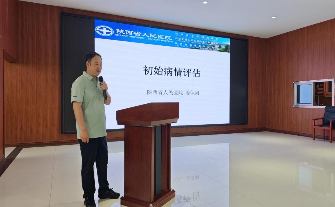 对县级辖区内医疗单位100余名医护人员开展培训讲座。培训重点围绕“初始病情评估”“氧疗与患者安全转运”进行。姜保周副主任结合身边的案例,用图片、视频等方式细致生动地讲解了“初始病情评估”的重要性及方法,让在场的医护人员深刻认识到准确评估病情对于患者救治至关重要。赵雪云副护士长围绕氧疗与患者安全转运这一主题,详细讲解了氧疗的正确操作方法以及在患者转运过程中的安全注意事项,讲解深入浅出,实用性强,为基层医护人员提供了宝贵的指导。此前9月6日,科室在铜川市宜君县中医黑料网