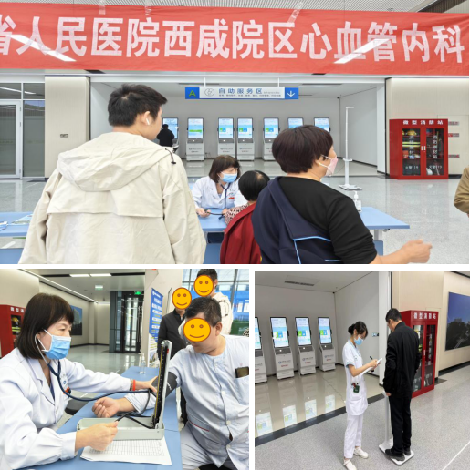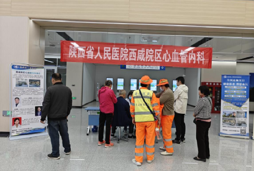 西咸院区活动现场,心血管内科(西咸)张小兰副主任医师详细询问群众的身体状况、饮食习惯和用药情况等,根据结果和个人情况给予针对性的建议;同时和熊佳欣护士认真地为每一位前来就诊的群众和科室住院患者及工作人员测量血压、身高、体重、计算BMI等,并一一做好记录。医务人员凭借丰富的专业知识和临床经验,对群众的问题给予耐心解答和建议。活动共免费测量血压110余人次,提供健康咨询和指导110余人次,发放科普手册50余份。