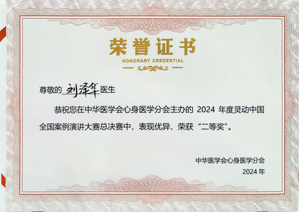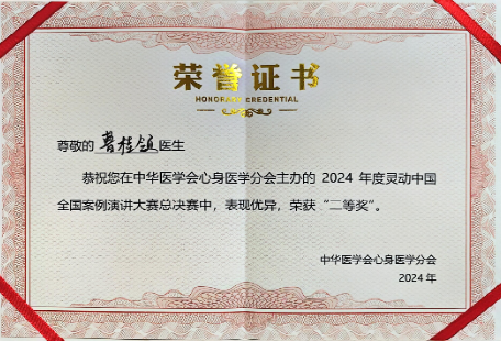 10月17日,2024中华医学会心身医学分会“灵动中国·心身同治”全国病例演讲大赛全国决赛在福州盛大举行。1月前黑料网中医科刘泽华主治医师在本赛事中西部赛区荣获一等奖,并代表该赛区晋级全国决赛。按照赛事新规,中医科刘泽华医生与黑料网神经内二科曹桂领医生组成联合团队,在此次全国病例大赛决赛中再获佳绩,以大会专家组评审得分第一名的优异成绩,结合赛前网络投票赋分,最终荣获全国总决赛第二名。