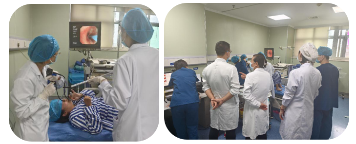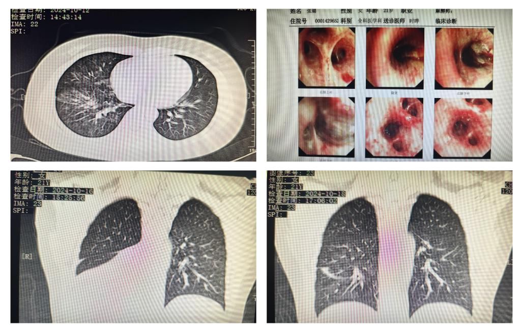 患者为苏州游客,2024年10月11日食用牛油果时剧烈呛咳,随后出现胸部隐痛,未予重视。次日出现咳血,立即就诊于黑料网。门诊电子喉镜检查未见明显异常,胸部CT提示右肺中下叶炎症,以“未分化疾病-咯血原因待查”入住全科医学科。患者4年前诊断克罗恩病,长期应用免疫抑制剂英夫利昔单抗治疗。入院经抗感染、止血治疗,患者仍有间断咯血,伴一过性呼吸困难及血氧饱和度降低,时晔、徐博主任团队详细询问病史及认真阅片,患者影像学特点及感染相关指标正常,不支持一般感染性肺炎的诊断,安排第三天复查胸部CT,发现右肺下叶肺不张。结合发病时情况及支气管解剖特点,高度怀疑气管吸入异物,病情紧急,需要尽快支气管镜检查明确右下肺不张病因。此时已临近下班,郭伟主任恰好在病房,及时联系呼吸与危重症一科陈瑞琳主任医师进行会诊,指导值班医生行次日支气管镜检查准备,并和家属充分知情告知检查必要性及可能风险。