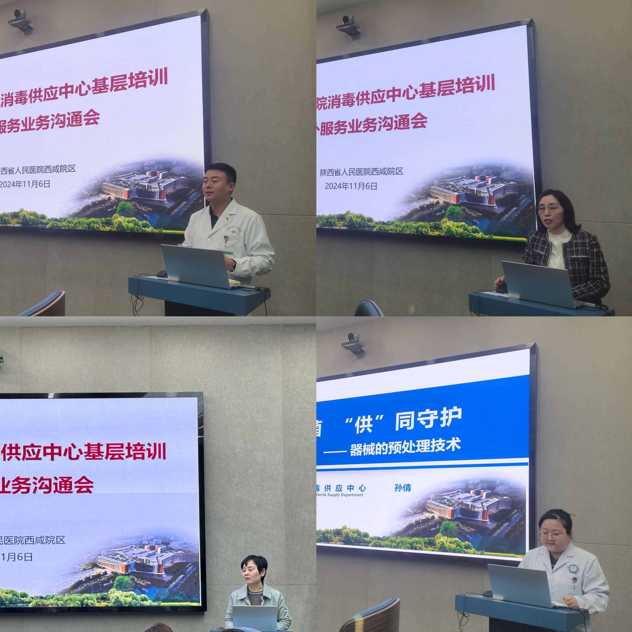 业务管理部刘鹏副处长致辞,表示承担部分西咸新区医联体单位复用医疗器械的清洗消毒灭菌服务,对优化社会资源、保护医疗环境、防止交叉感染、降低患者费用具有积极作用和重要意义,愿与西咸新区医联体单位携手,共同提高各单位消毒供应服务水平。
