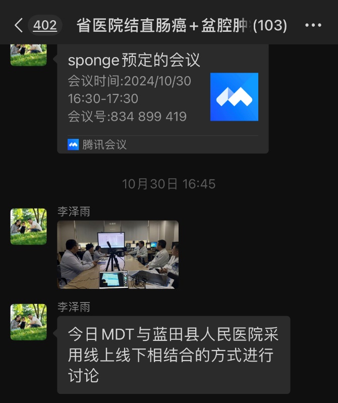 超声科学员关于经直肠腔内超声诊断操作及适应症与注意事项。余敏主任医师、靳荣辉主治医师在讨论中依据患者MRI与超声影像的分期,提出术前新辅助治疗的重要性及短程放疗对肿瘤局部控制的临床疗效。严翔主治医师提出患者肝脏左外叶存在可疑转移病灶,建议完善肝脏特异性钆色酸二钠造影剂增强MRI+DWI,并在术前进一步明确诊断及分期,做好基线数据对比。邱健主任总结强调疑难病例的特点及综合MDT讨论患者的后续检查治疗建议,并进行答疑解惑。