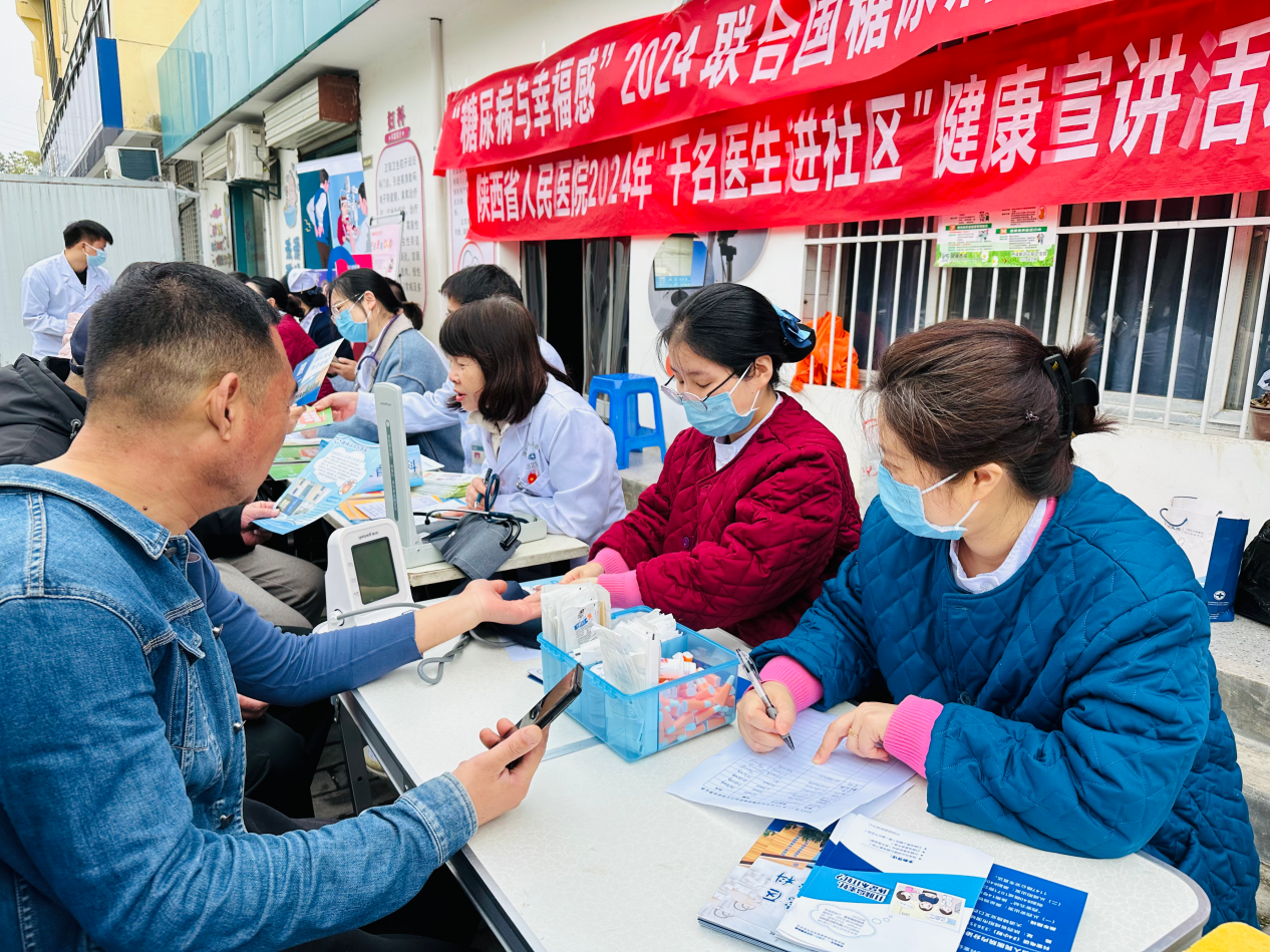 内分泌科西咸病区组织西咸院区心血管内科、神经内科、呼吸内科、消化内科及综合外科在渭城区正阳卫生院开展了联合国糖尿病日义诊活动,吸引了周边群众近100人前来咨询检查,并耐心地解读检测结果并提出个性化的健康建议。帮助民众了解糖尿病知识和护理方法,意识到糖尿病及相关并发症的危害,引导改善生活习惯,提升健康素养。