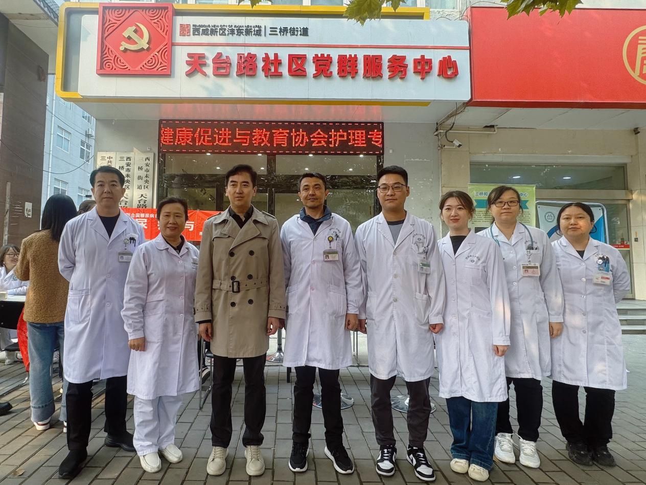11 月 22 日上午,由西咸院区神经内科牵头,联合心内科、呼吸与危重症医学科、消化内科、移植泌尿外科、内分泌科、儿科、综合外科、肛肠外科等多科室专家组成的医疗团队,与窑店卫生院携手,在窑店街道渭柳佳苑瑞秋园小区举办宣传义诊活动。