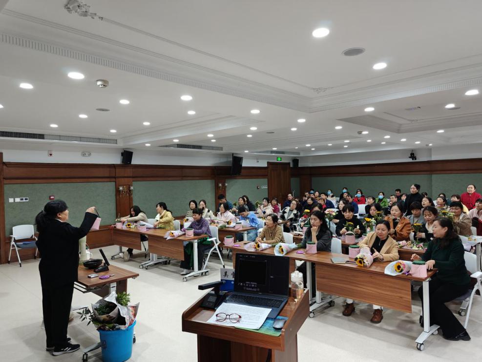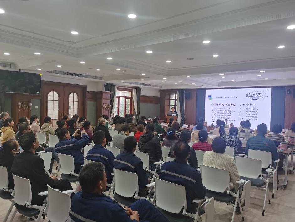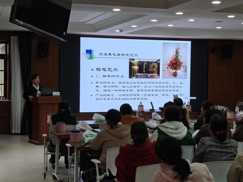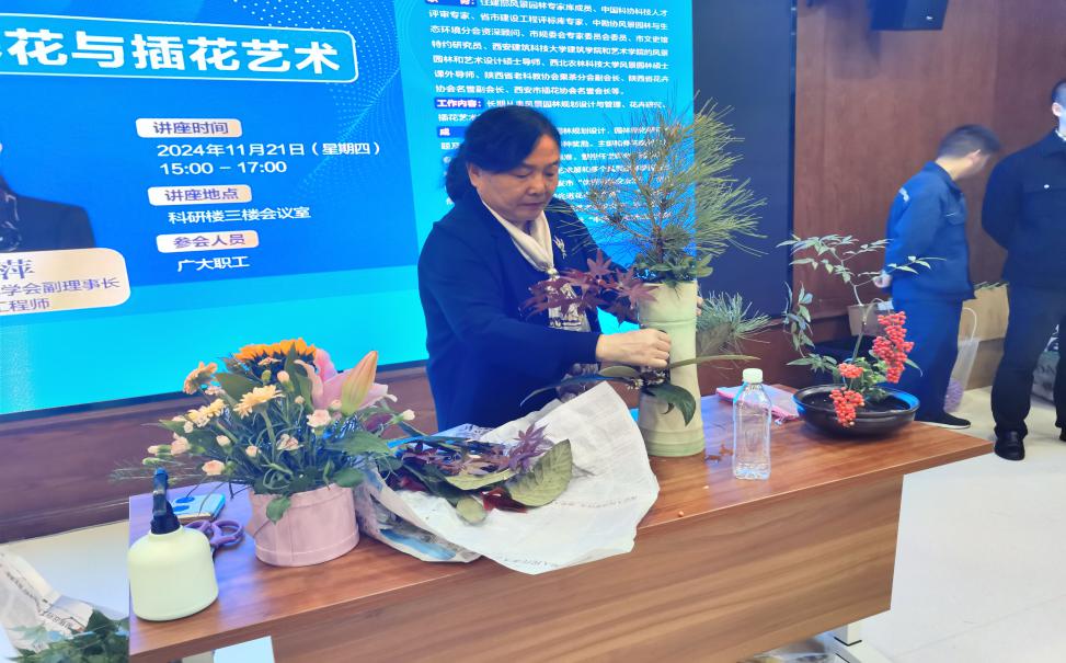 为提升黑料网职工美学素养,丰富职工的文化生活,落实“双心”文化,11 月 21 日下午,后勤服务中心举办“家庭养花与插花艺术”讲座,广大职工踊跃参加。讲座邀请到在风景园林和插花艺术方面有着深厚造诣的陕西省风景园林学会副理事长、正高级工程师专家吴雪萍授课,由后勤服务中心郝朋主持。