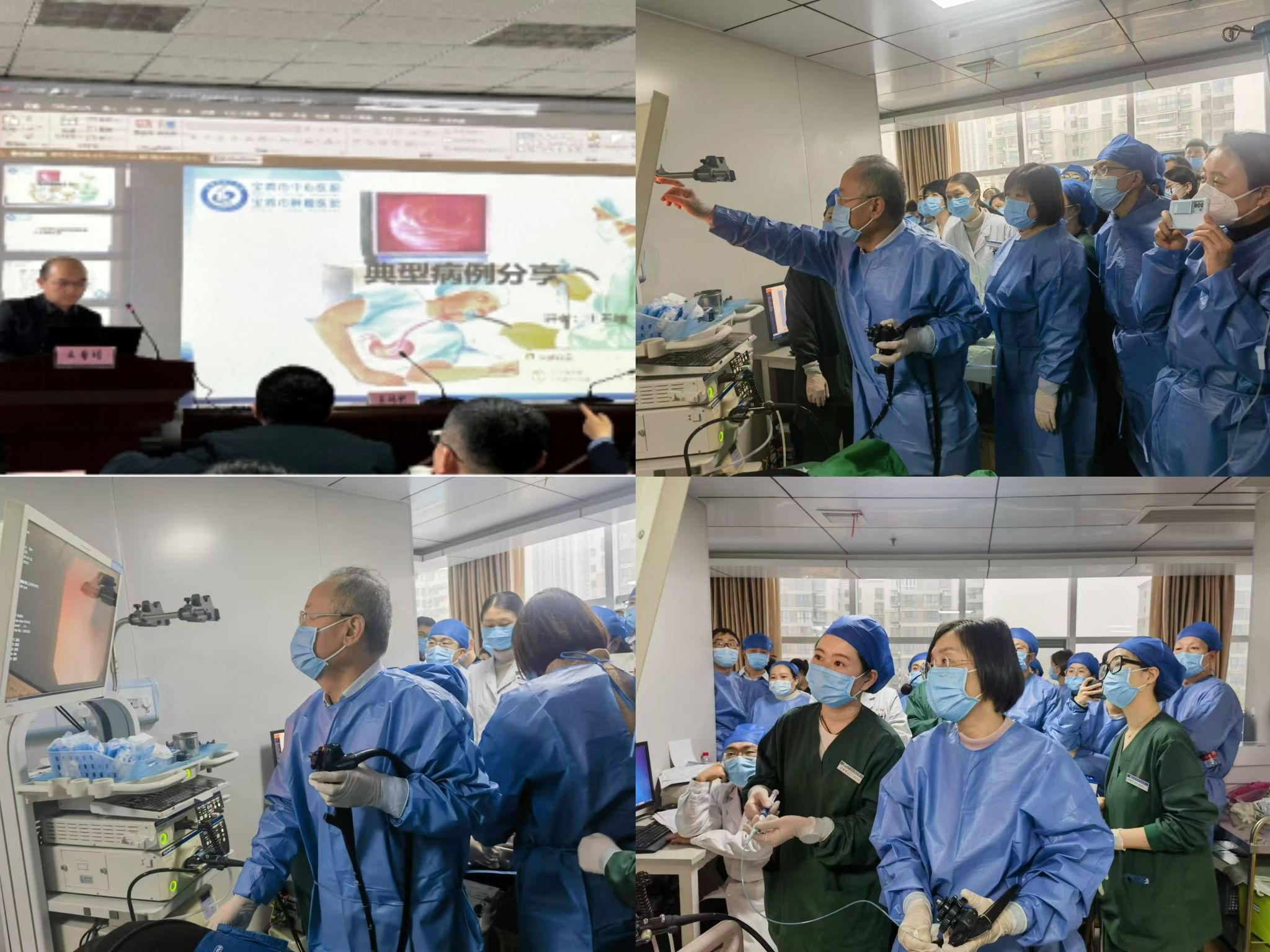 及咸阳、甘肃徽县等70余位同道全程积极参与,共同学习探讨肝硬化食管胃静脉曲张内镜下治疗技术,以提高肝硬化合并急性上消化道大出血患者的救治成功率。