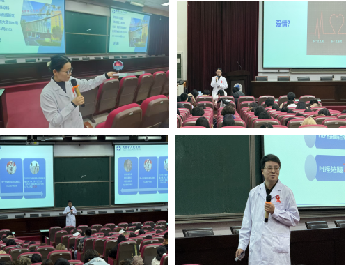 同时,李彧主任带领刘海军护士长以及梁乐医生一行走进陕西科技大学,为大学生带来了以“树立正确恋爱观,共筑防艾健康墙”为主题的科普讲座,提高大学生对艾滋病的防治认知,增强自我保护意识。梁乐医生从HIV的流行现状、临床表现以及治疗方法三个方面进行了深入讲解,详细介绍了HIV在全球和我国的流行趋势,以及感染后的临床表现,普及了目前治疗的最新进展,强调了早期发现和规律治疗的重要性。刘海军护士长围绕HIV的传播途径和预防措施进行了讲解,详细解释了HIV是如何传播的,以及如何有效地预防感染,还讲解了日常生活中的防护措施,以及如何正确对待HIV感染者和患者,消除社会歧视。