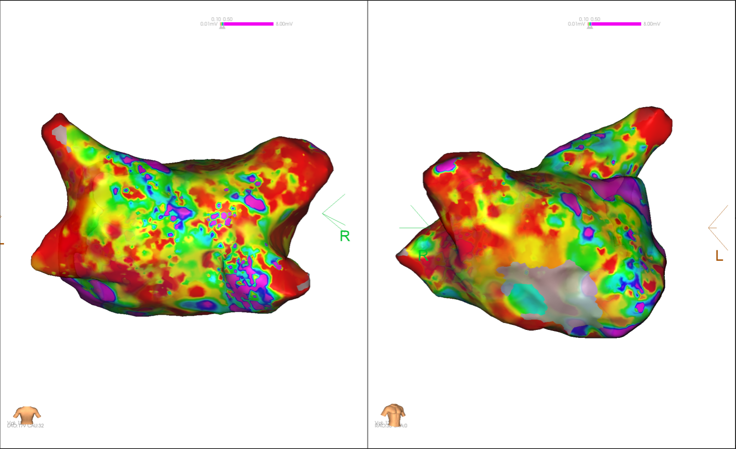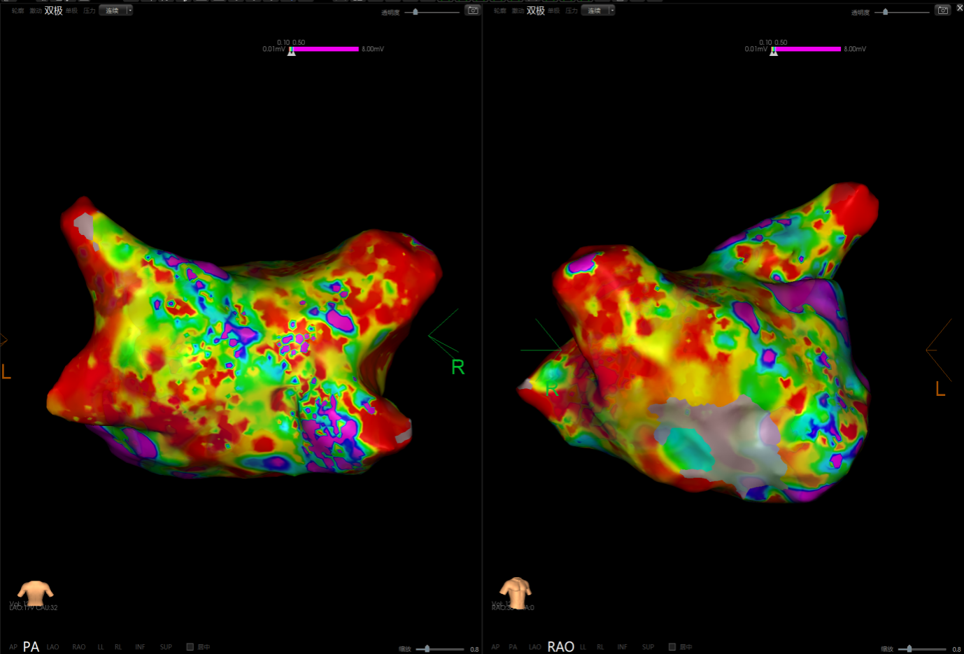 图2 术中电压标测提示左房基质差