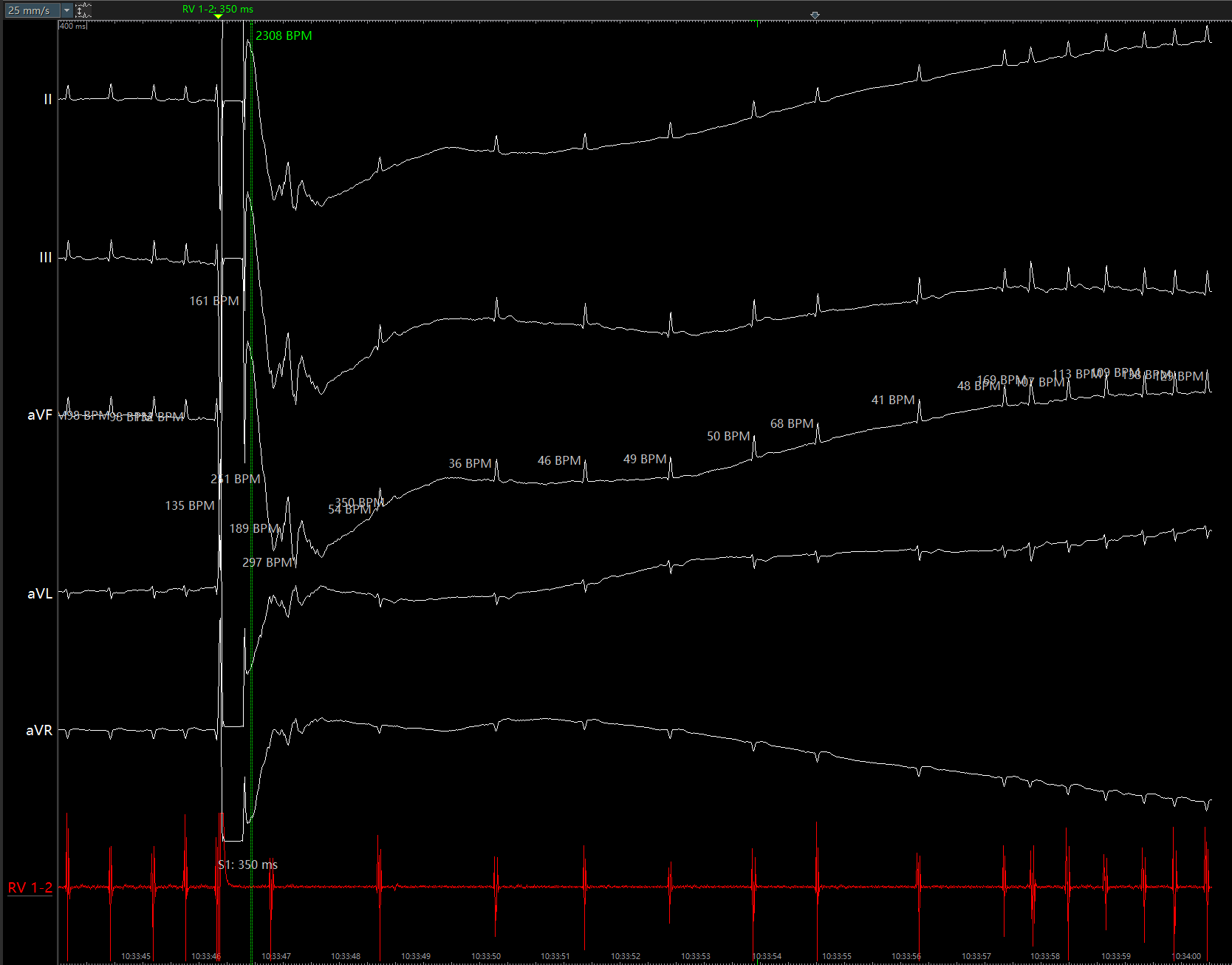 图3 PFA于右肺静脉后壁交叉消融时转为窦率,继续消融