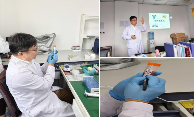 以专科培训提升科室人员专业素养是血型参比实验室平台筹备过程中的重要组成部分。2024年下半年,三位教授为输血科工作人员开展了为期4天共32学时的“手把手”式传授与教学,包括理论讲解、实践教学和实验操作,内容涵盖血型血清学检测中的疑难问题,直接和间接抗球蛋白试验、酶处理细胞的制备方法等多种检测技术,贴壁实验,PEG增强法,收放散实验等,极大地提高了科室人员的血型血清学技术,为平台建设奠定扎实的专业基础。