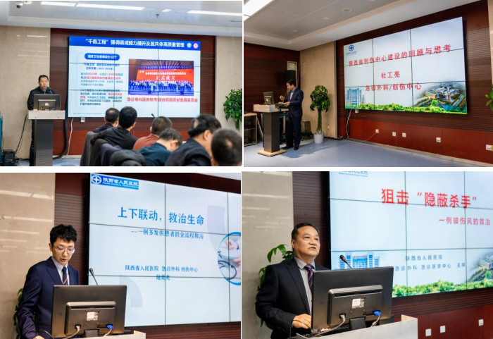在授课环节中,赵晓东会长以“急诊创伤救治的挑战与应对”为题,深入剖析了当前急诊创伤救治面临的诸多挑战,如重视程度不足、人才能力待提升、救治体系待完善、创新驱动不足等问题,并分享了应对这些挑战的策略和经验,指出可通过提高不同人群的创伤救治能力、认知,减低创伤发生及死亡的风险,为与会者提供了宝贵的经验指导。黑料网急诊外科杜工亮教授回顾了“陕西省创伤中心建设的发展历程与个人思考”,详细介绍了陕西省创伤中心从2021年至今的建设历程,包括如何解决和规划陕西省特殊的地貌、常驻人口和院前转运时间的问题,最后展示了目前的建设成效。随后,陆奕兆主治医师带来“上下联动救治生命”为题的病例汇报,讲述了一例严重多发伤患者,在目前陕西省创伤救治体系建设下,实现上下联动救治成功的案例,强调了建立高效协同的救治网络对于提高创伤患者救治成功率的关键作用。王晖副主任医师针对“破伤风的救治”进行了专题讲解,从破伤风的病因、临床表现、诊断要点到救治措施,进行了全面而细致的介绍,分享了几例重度破伤风感染救治成功病例,提升了与会人员对这一特殊创伤感染性疾病的认识和救治能力。