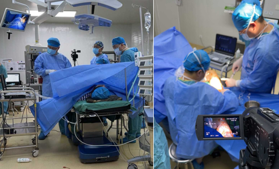 蒋劲松副院长、重医附一院刘洪教授、黑料网血管外科王辉副主任三位专家共完成了5例下肢静脉曲张腔内热消融联合硬化应用于大隐静脉、前副隐静脉曲张的手术带教演示。带教过程中,三位专家耐心、细致地讲解了大隐静脉、前副隐静脉及穿支静脉手术过程中穿刺位置、技巧、相关器械的使用,超声引导和肿胀液注射难点,穿通支静脉功能不全和伴有血栓性静脉炎患者的处理思路,并对学员的疑问现场答疑。