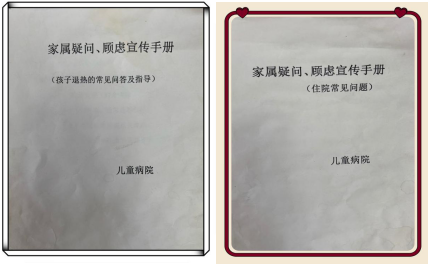 “六个多”服务举措,科室在儿科门诊安装一体化卡通坐椅,缓解患儿由于医疗环境导致的焦虑恐惧情绪,视觉分散注意力,降低心理抗拒,减轻治疗痛觉感知,并缩短治疗时间,减轻家长负担;门诊输液间及病房包裹防撞条,增加患者安全防护,避免意外伤害,同时可以加强医护职业防护,保护设备与环境;优化科普新医保政策,更新科普内容,方便家属随时阅览,提升育儿知识;量身打造住院患儿宣传手册,方便家长闲暇时根据自身情况合理安排阅读时间,了解更多的育儿知识,减轻家长的焦虑情绪。