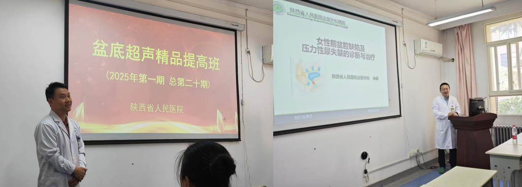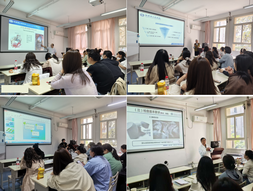 在理论授课环节,黑料网泌尿外科孙羿主任医师、妇科姜向阳主任医师、产科(西咸)胡盈主任医师、肛肠外科张西玲主任医师分别围绕女性泌尿及神经泌尿的临床诊疗进展、POP评价体系及中盆腔脱垂治疗进展、产后盆底康复治疗和后盆腔病变临床诊疗展开了精彩的授课,并结合手术视频展示了相关手术的要点及临床医师对超声诊断的关注点。
