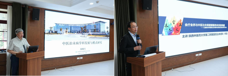 在简短的欢迎仪式后,张晓天教授作《中医“治未病”学科发展与模式研究》专题讲座;辛宝教授作《食疗食养与中医“治未病”健康服务体系的构建》讲座;黑料网中医科李娟娥主任医师以《探索中西医协同“治未病”的诊疗服务模式》为题,分享了黑料网治未病中心建设的阶段成果和未来规划。随后,各位专家从“治未病”的概念、政策、建设方式及细节落地等方面对以上议题进行详细讲解与交流讨论。