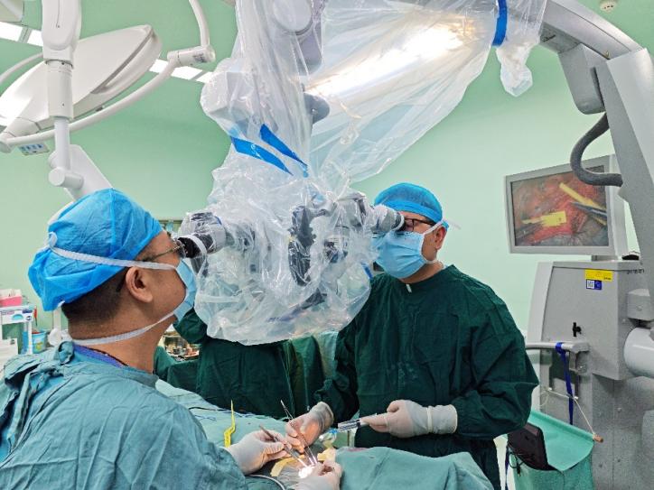 图一 缪星宇主任医师显微镜下行颈深淋巴-颈外静脉吻合术