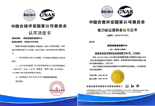 2025年2月15-16日,CNAS委派6位专家对陕西省临床检验中心进行了为期两天的现场评审,评审覆盖中心质量管理体系、人力资源配置、能力验证运作流程等关键环节。经过多维度评估,CNAS评审组一致认定,中心各项活动及质量管理体系运行符合CNAS认可规则与《能力验证提供者认可准则》(ISO 17043)的各项规定要求。5月30日,陕西省临床检验中心被授权使用CNAS标识,并获批为全省临床实验室提供94个医学检验项目的能力验证服务,进一步保障检验结果的准确性与可靠性,助力陕西省医学检验领域与国际接轨。